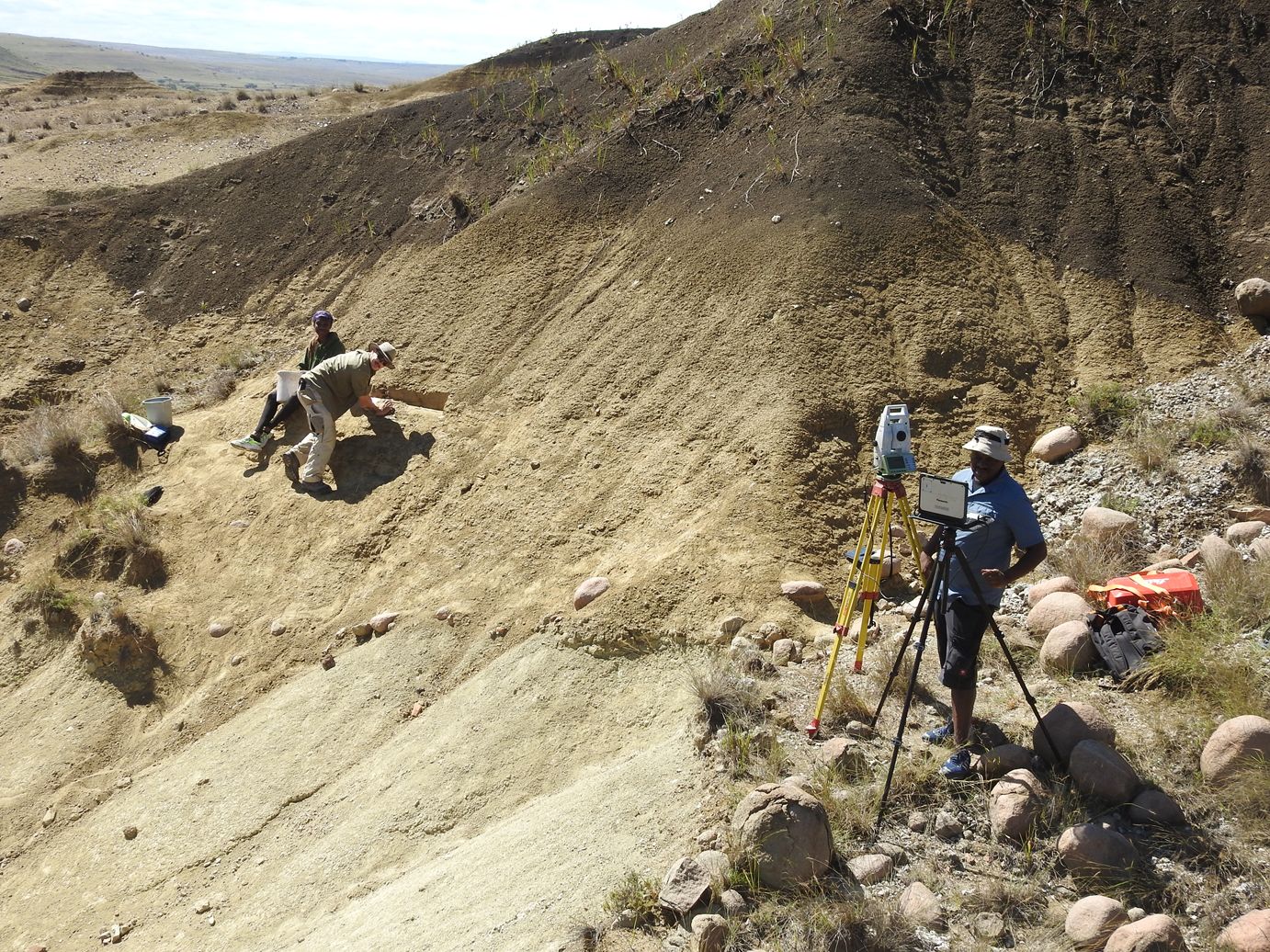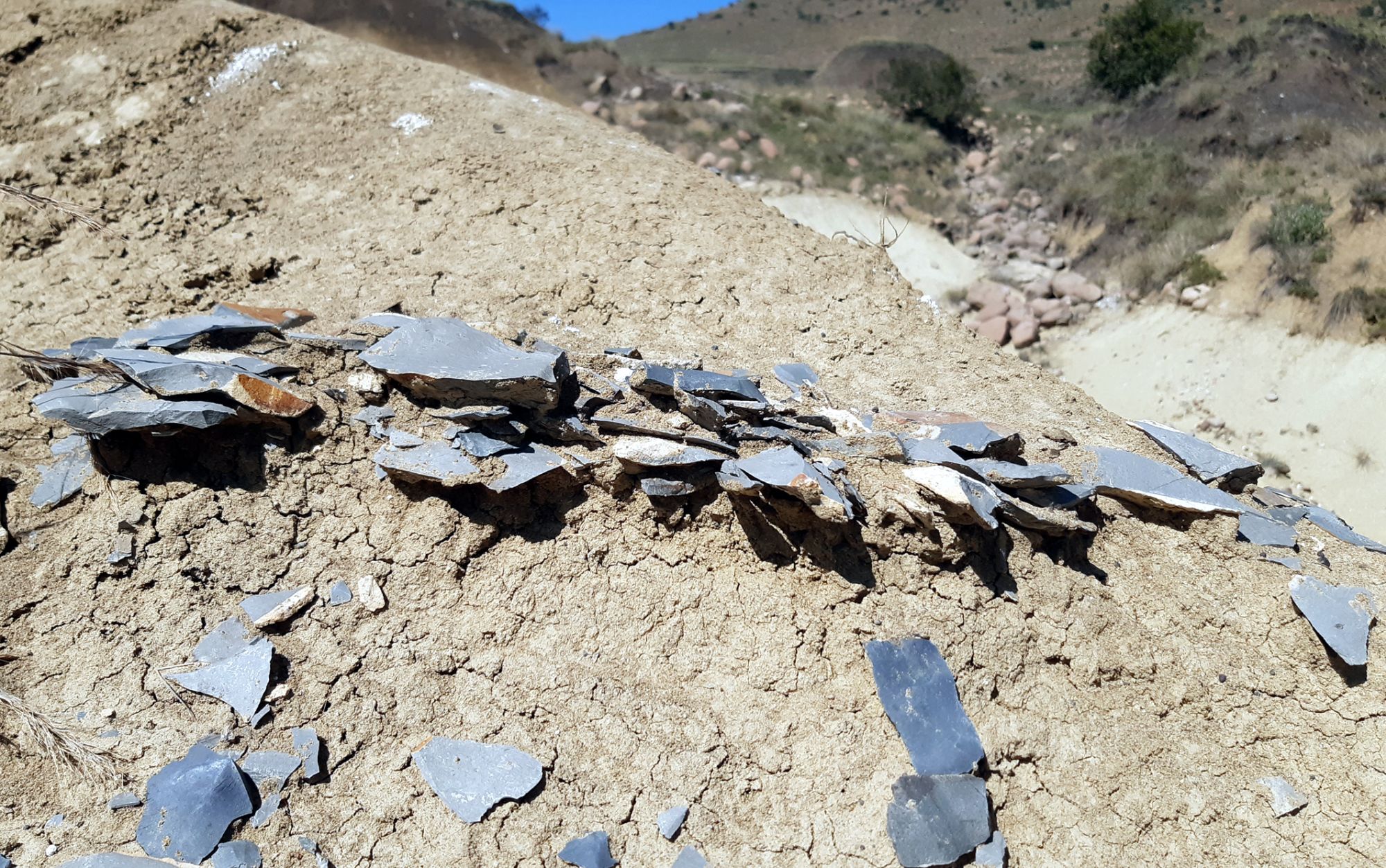 Już podczas naszych pierwszych wizyt — zarówno pieszych, jak i z użyciem dronów — odkryliśmy około tuzina stanowisk, w których doskonale zachowane, niezerodowane odłupki hornfelsu były widoczne w zerodowanych osadach — absolutna rzadkość jak na stanowisko odkryte na otwartej przestrzeni, mówi Will. Podczas szczegółowych badań naukowcy zauważyli wyraźnie wyodrębnione warstwy, w których zagęszczenie artefaktów wynosiło od 200 tysięcy do 2 milionów na metr sześcienny.