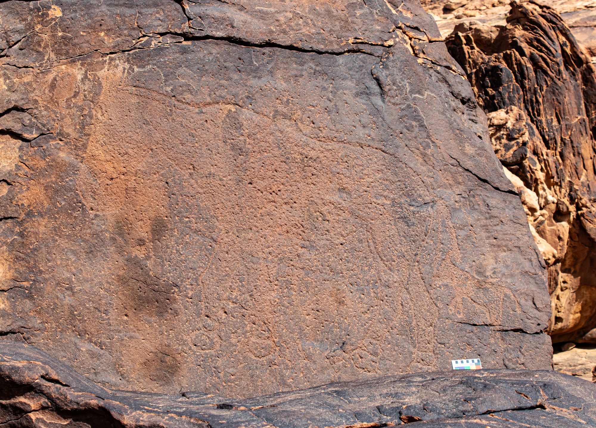 W niebadanych dotychczas regionach Jebel Arnaan, Jebel Mleiha i Jebel Misma, położonych na południowym krańcu pustyni Wielki Nefud, naukowcy odkryli ponad 60 miejsc z 176 przedstawieniami zwierząt wygrawerowanymi na skałach. Widzimy na nich głównie wielbłądy, gazele, koniowate, dzikie kozy i tury. Jest wśród nich 130 przedstawień naturalnej wielkości, niektóre z nich mają 3 metry długości i ponad 2 metry wysokości.