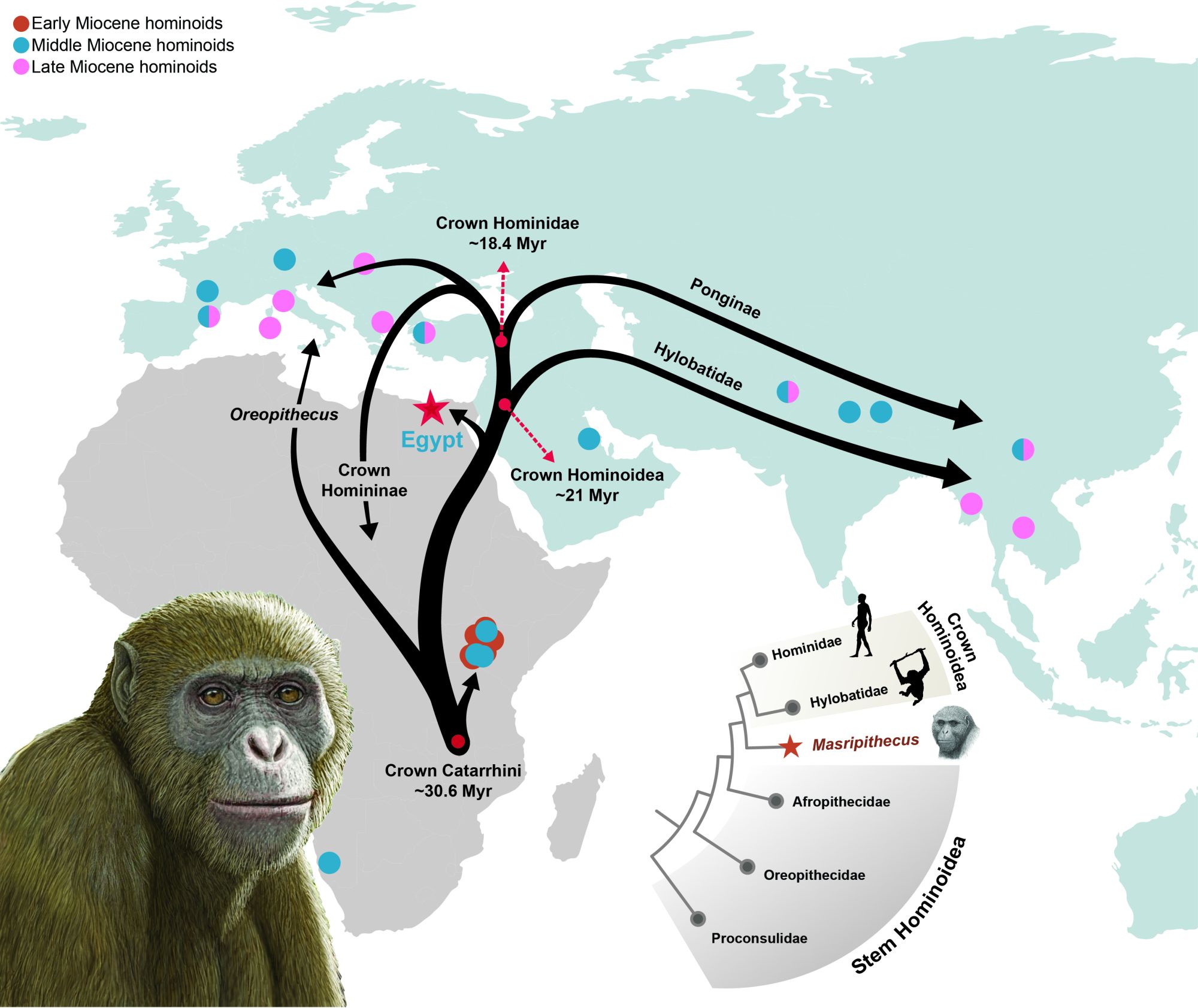 Anatomia to jednak nie wszystko. Naukowcy wykorzystali zaawansowane metody statystyczne, które pozwoliły im połączyć cechy anatomiczne żyjących i wymarłych małp człekokształtnych, informacje DNA oraz wiek geologiczny znalezisk w celu ustalenia pokrewieństwa pomiędzy gatunkami i stwierdzenia, kiedy oddzieliły się od wspólnych przodków. Analiza taka pokazała, że Masripithecus jest bliżej spokrewniony z żyjącymi małpami człekokształtnymi niż jakikolwiek gatunek z wczesnego miocenu ze wschodu Afryki.
