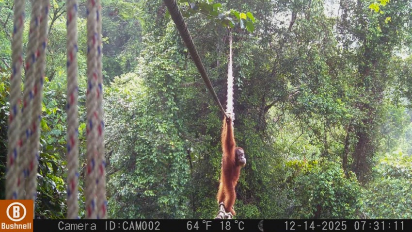 Brytyjskie Sumatran Orangutan Society i jego indonezyjski partner Tangguh Hutan Khatulistiwa (TaHuKah) odnotowały sukces, który pomoże chronić orangutany. Po raz pierwszy zarejestrowano orangutana, który korzysta z przejścia nad drogą. To potwierdzenie, że utworzone przez ludzi mosty linowe mogą pomóc zwierzętom w przemieszczaniu się pomiędzy obszarami coraz bardziej pofragmentowanego lasu. Dotychczas obserwowano inne gatunki małp korzystające z takich przejść. Teraz po raz pierwszy skorzystał z nich orangutan sumatrzański.