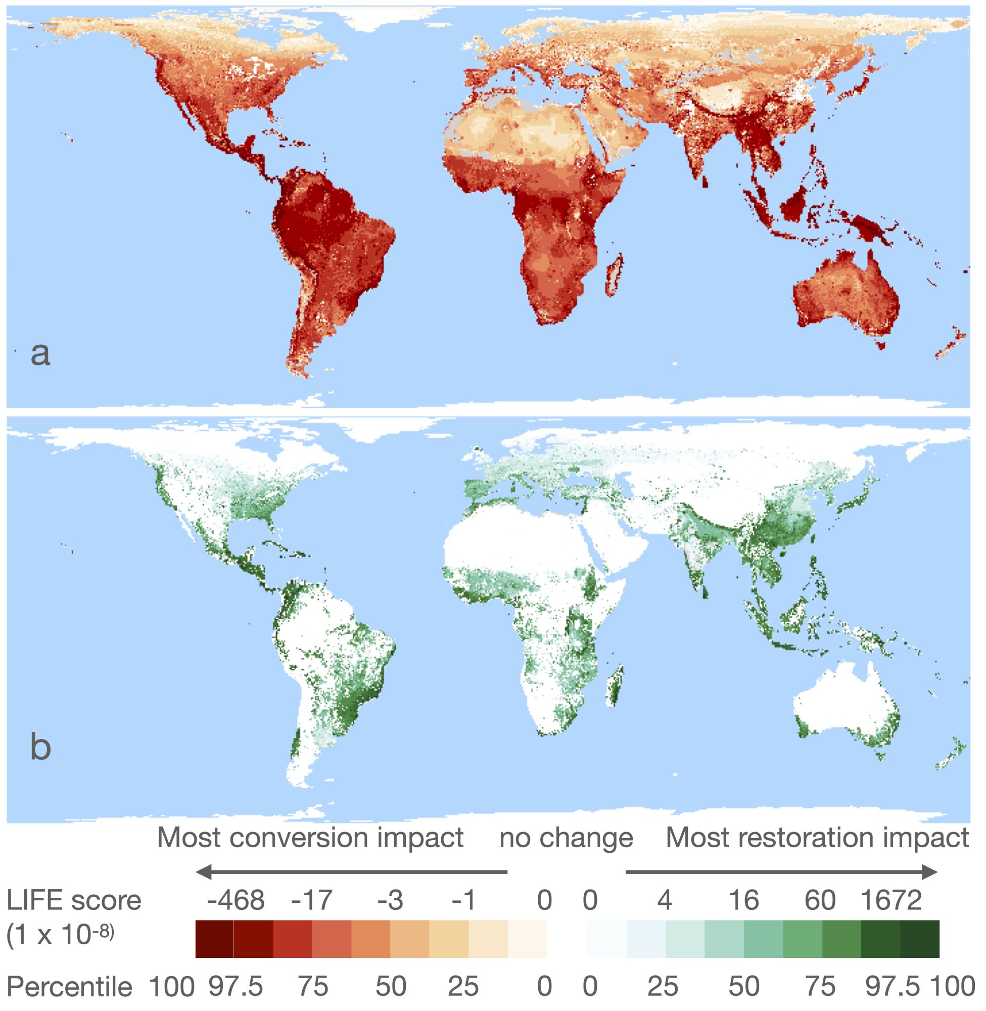 Indeks LIFE i dane na jego temat: LIFE: A metric for mapping the impact of land-cover change on global extinctions